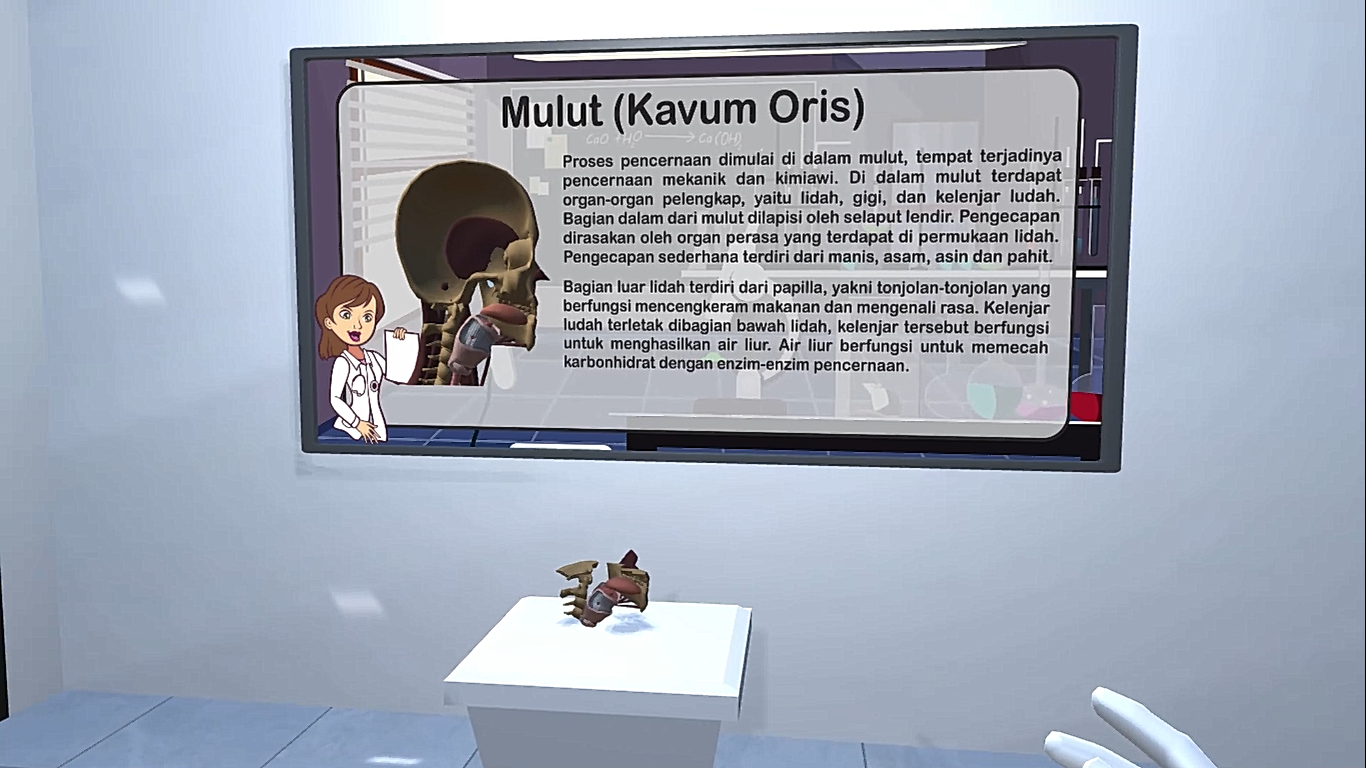Aplikasi ini dirancang dengan menggunakan teknologi Virtual Realty dimana aplikasi ini memberikan visual 3D dari setiap organ anatomi manusia. Aplikasi ini juga menggunakan oculus sebagai controller dimana penggunanya dapat meng-explore lebih jauh dalam dunia Virtual Realty.