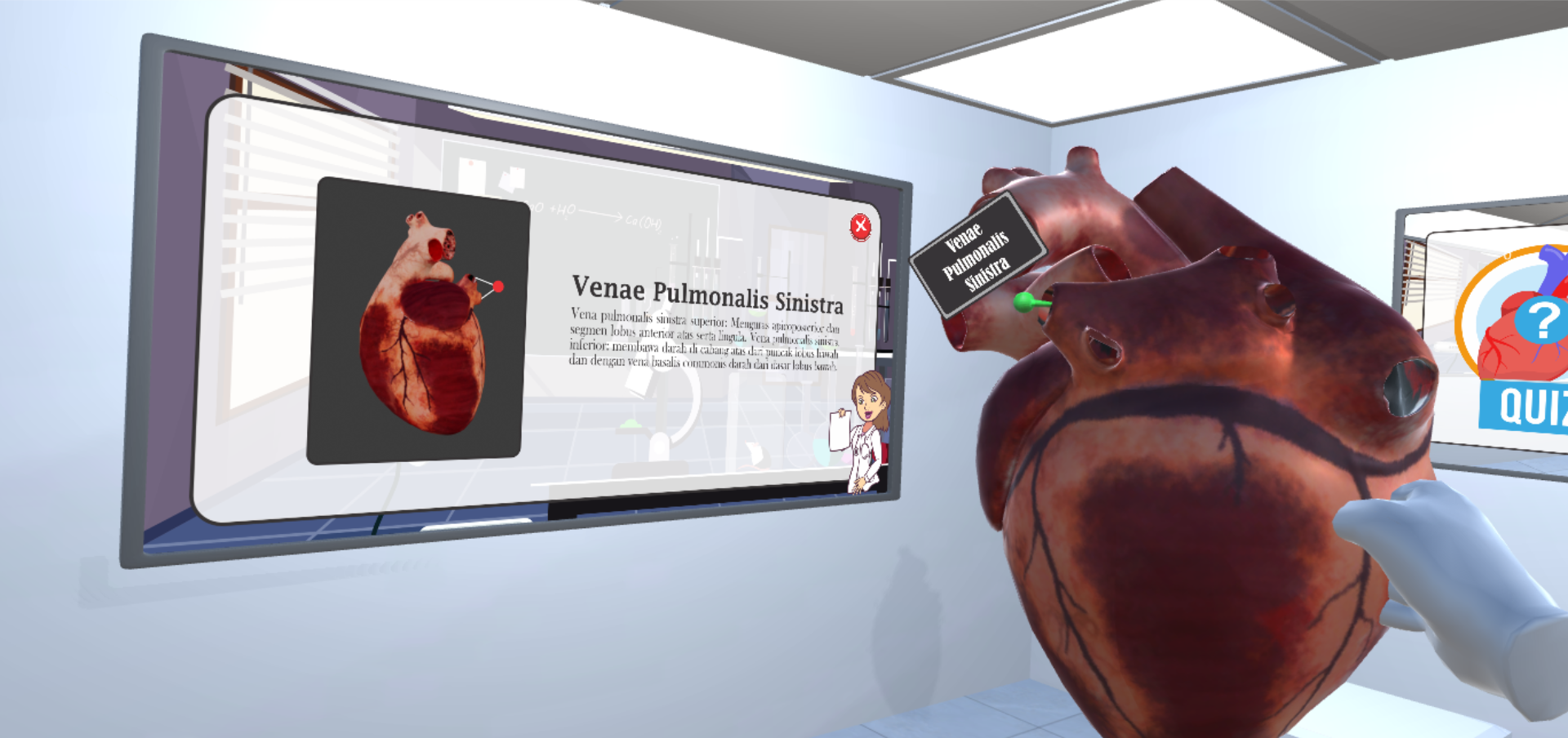 Aplikasi ini merupakan sebuah media pembelajaran yang memberikan visual 3D dari anatomi Jantung manusia. Didalam aplikasi ini terdapat penjelasan mengenai jantung. Selain menampilkan visual 3D dan penjelasan, pengguna juga dapat berinteraksi langsung dengan model 3D jantung tersebut dibantu dengan perangkat oculus sebagai controllernya. Selain itu pada aplikasi terdapat game quiz Read more…